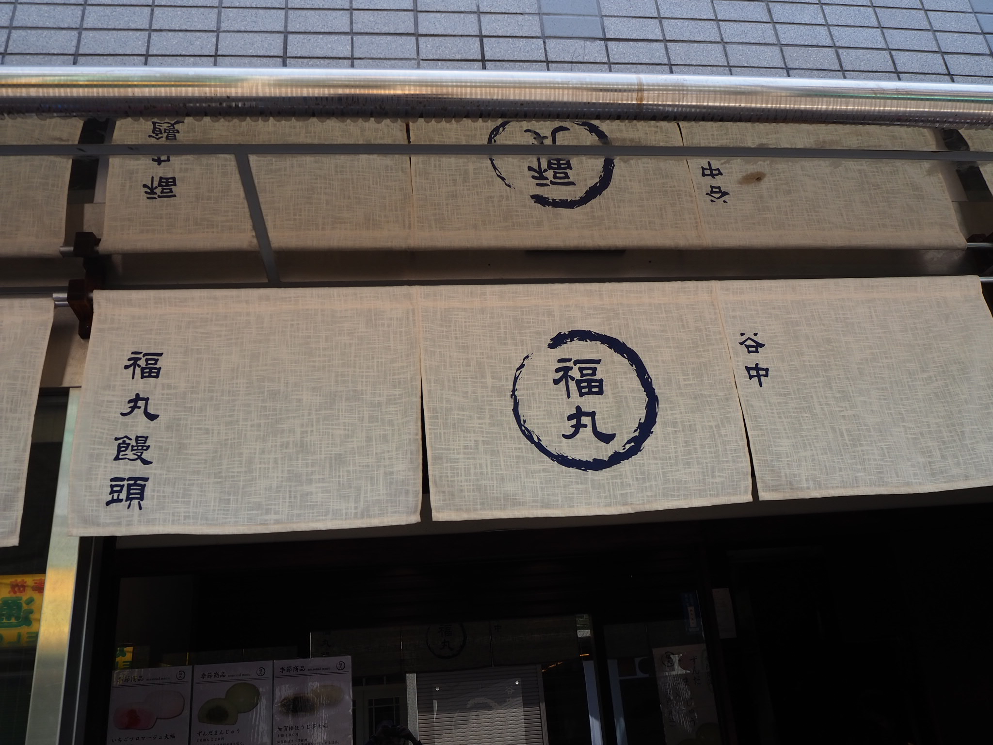 「谷中ぎんざ」を抜けて、「よみせ通り」に出て、「谷中福丸饅頭」で「餡入り草餅」をいただきました。美味しかった!